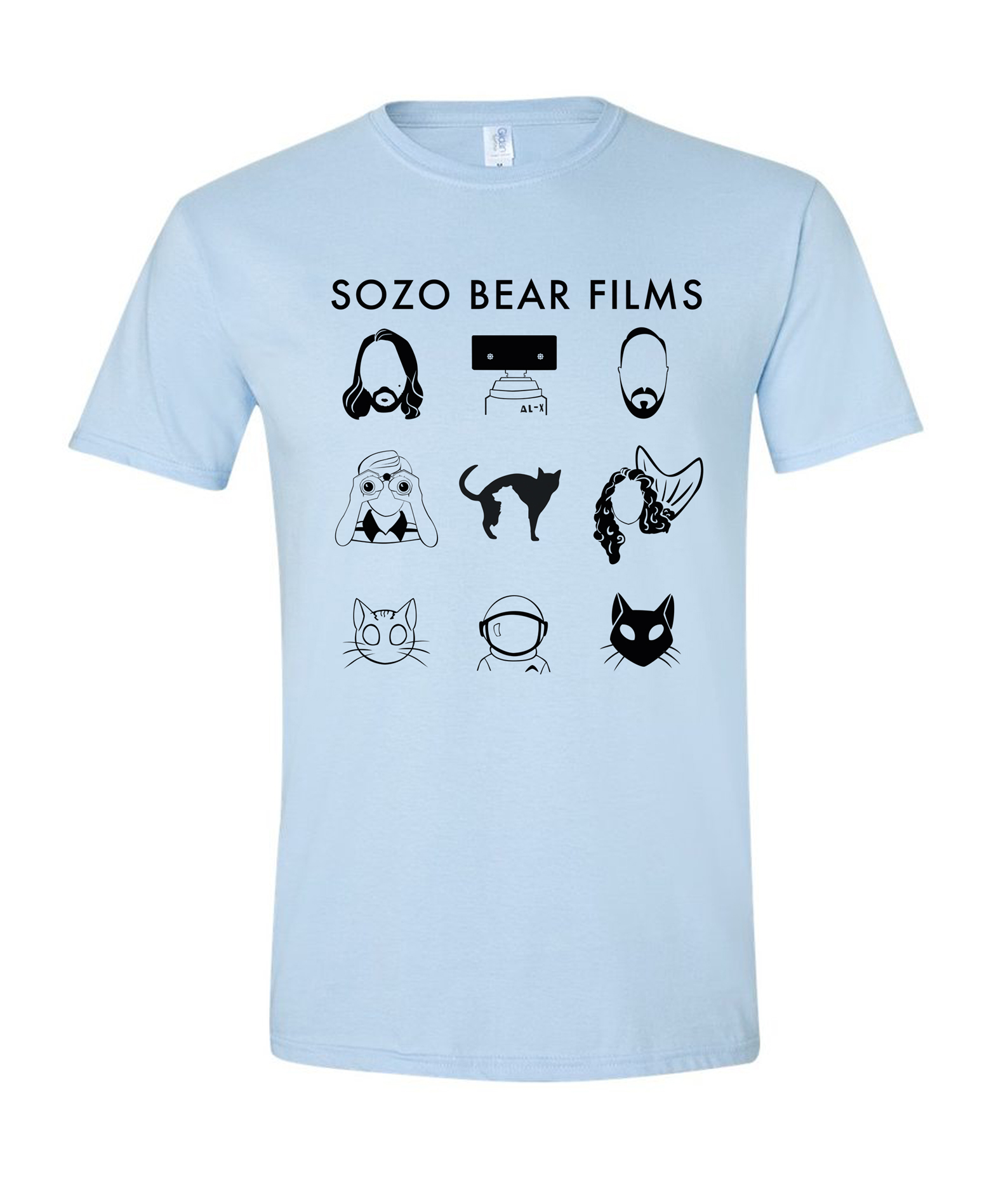 A unisex soft style T-shirt with Sozo Bear Characters against a light blue tee.