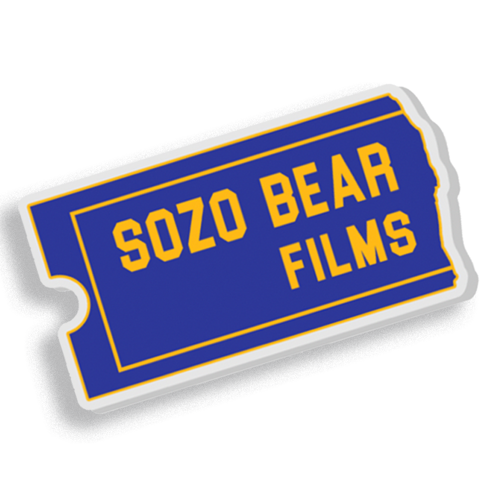 Blockbuster inspired Sozo Bear Films Pin. 1.4" x 0.75"